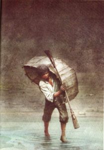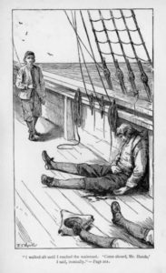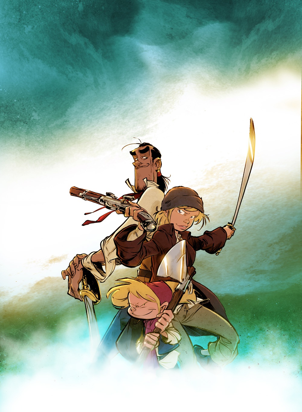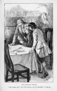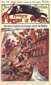 Lorsqu’un vieux marin détenant un mystérieux coffre s’installe dans l’auberge des parents du jeune Jim Hawkins, le garçon ignore qu’il va connaître la plus célèbre des aventures pirates ! Car le coffre renferme non seulement de l’or mais aussi une étrange carte, recherchée ardemment par une bande de pirates violents et cruels, et semblant mener à une île inconnue : L’île au trésor. Ce célèbre roman de Robert Louis Stevenson (1881-1882) concentre toutes les caractéristiques des romans de piraterie et participe à l’apparition de l’imagerie du pirate que l’on retrouvera ensuite dans d’innombrables œuvres, aussi bien en roman qu’en bande dessinée, au cinéma ou dans les jeux vidéo.