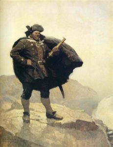 Chapeau tricorne, cache sur l’œil, jambe de bois, crochet à la place d’une main, perroquet sur l’épaule et grand voilier hissant un pavillon noir arborant une tête de mort. Ces caractéristiques dessinent le pirate tel que tout le monde se l’imagine aujourd’hui. Et celui qui est certainement à l’origine de cette représentation est Long John Silver lui-même, le fameux pirate de L’île au trésor qui entraine le jeune Jim à l’aventure. Il est l’archétype même du pirate et inspirera d’autres grands personnages comme le Capitaine Crochet et Jack Sparrow.